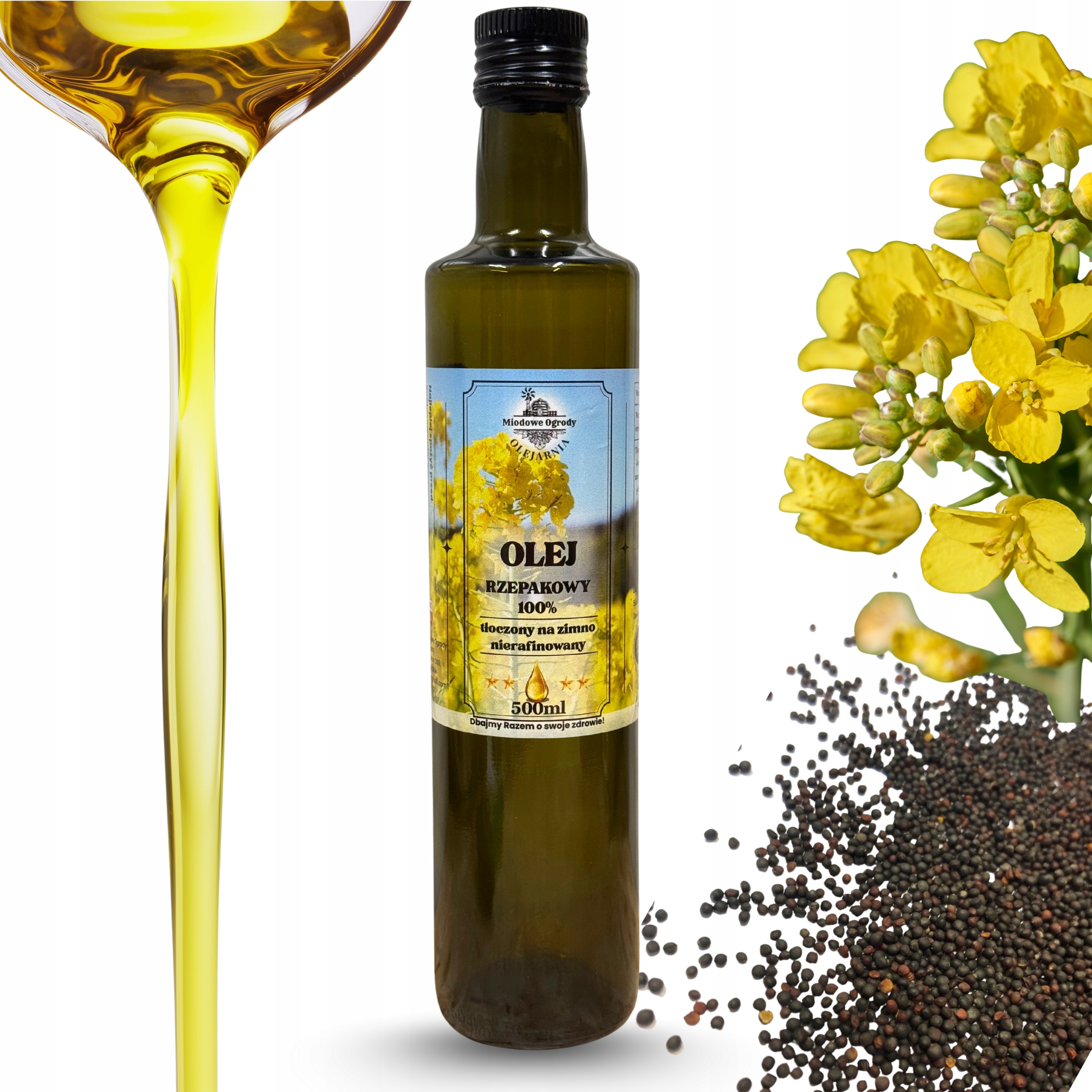 ✅ Olej tłoczony z rzepaku produkowanego we własnym gospodarstwie.