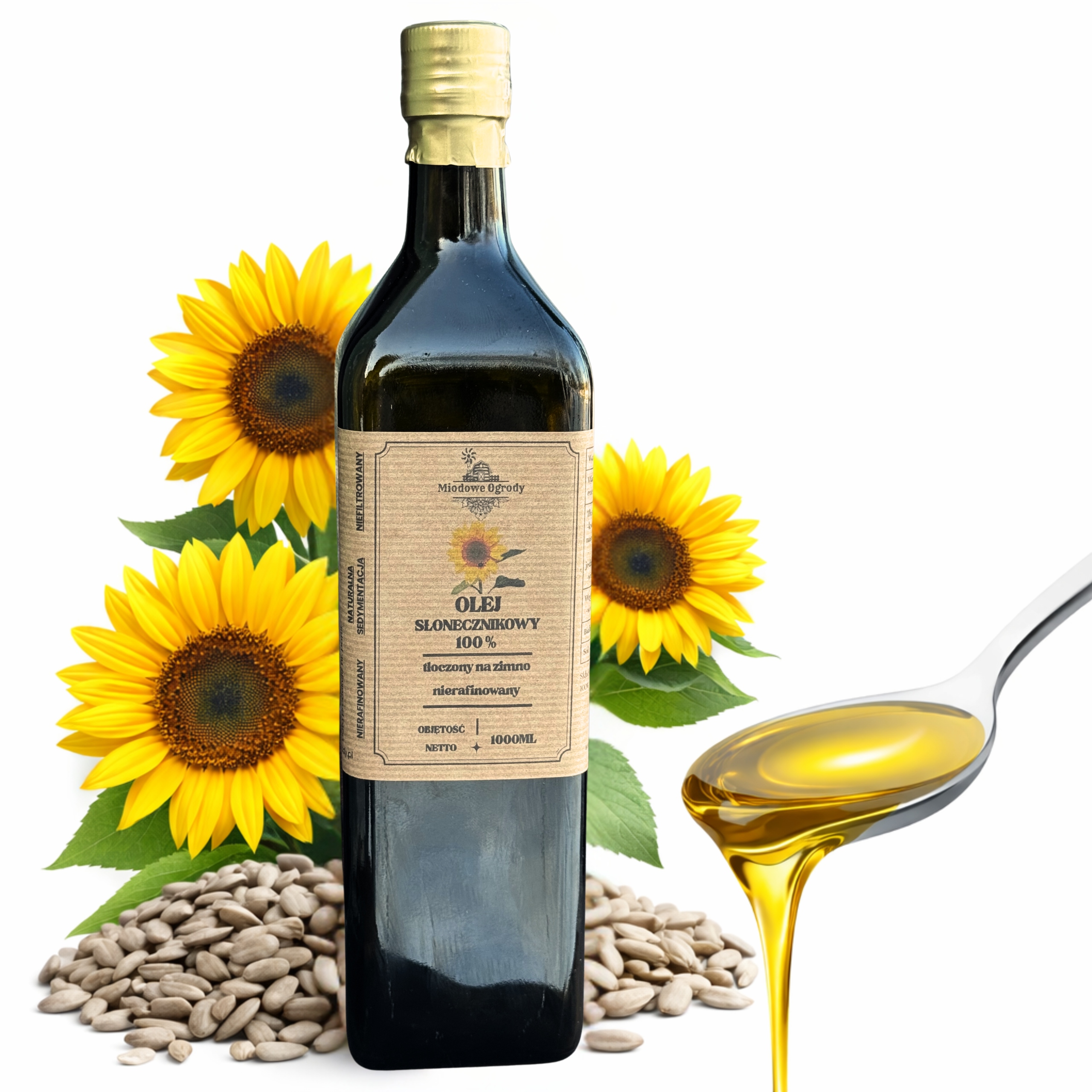 OLEJ SŁONECZNIKOWY TŁOCZONY NA ZIMNO • 1000ml • MIODOWE OGRODY