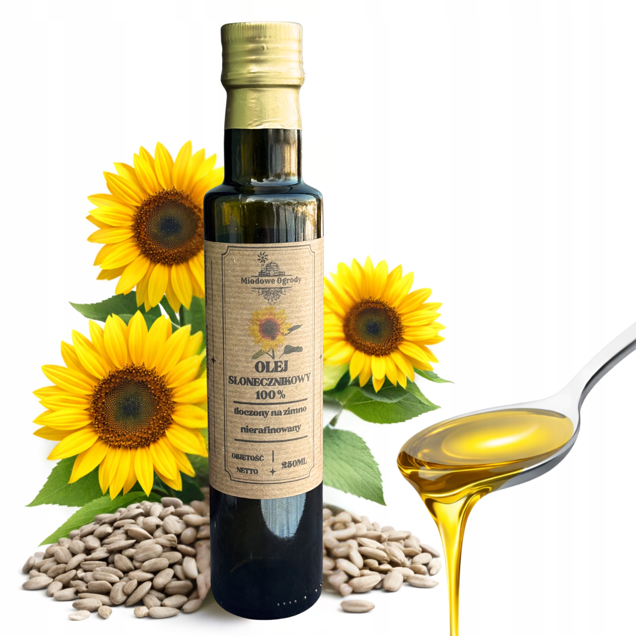 OLEJ SŁONECZNIKOWY TŁOCZONY NA ZIMNO • 250ml • MIODOWE OGRODY