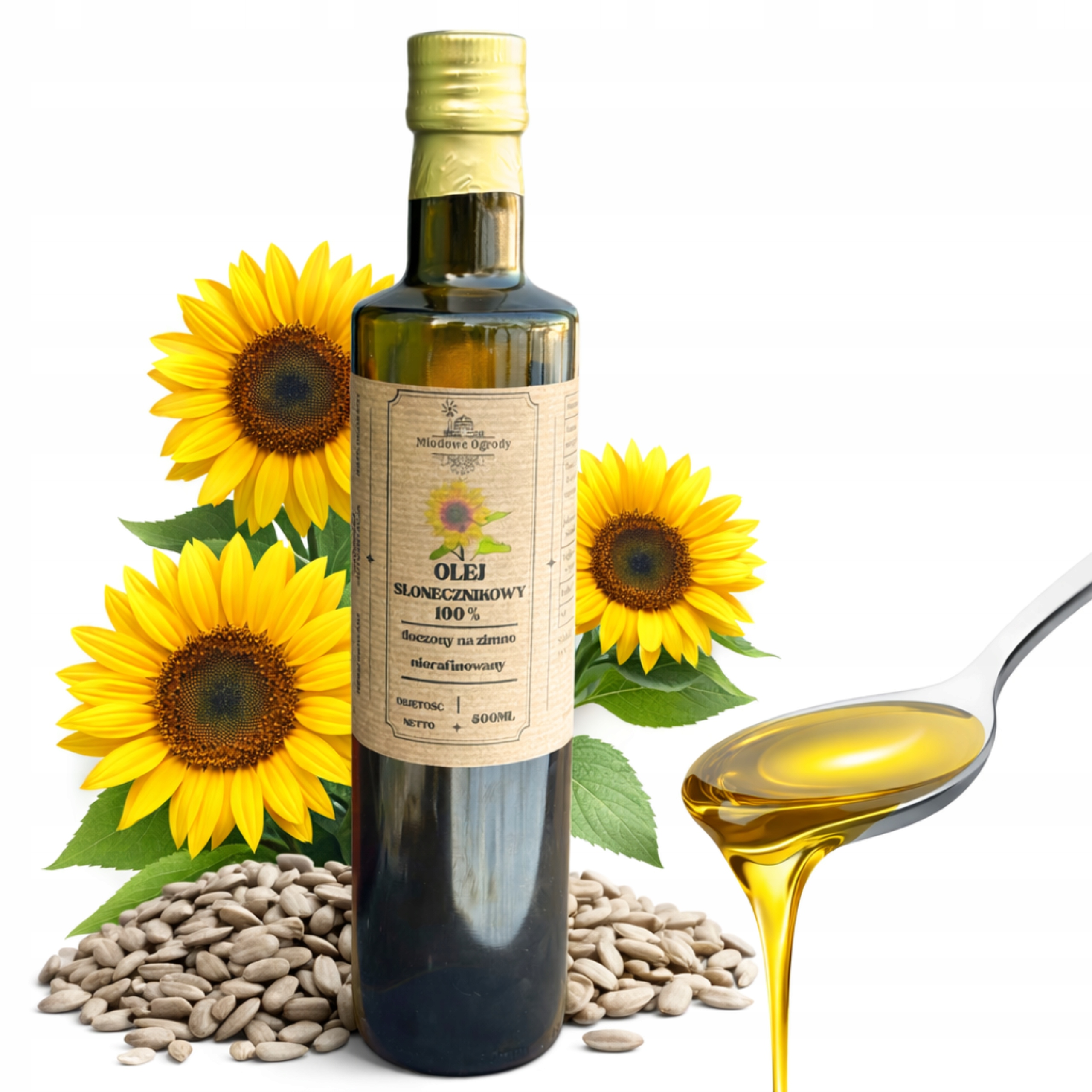 OLEJ SŁONECZNIKOWY TŁOCZONY NA ZIMNO • 500ml • MIODOWE OGRODY