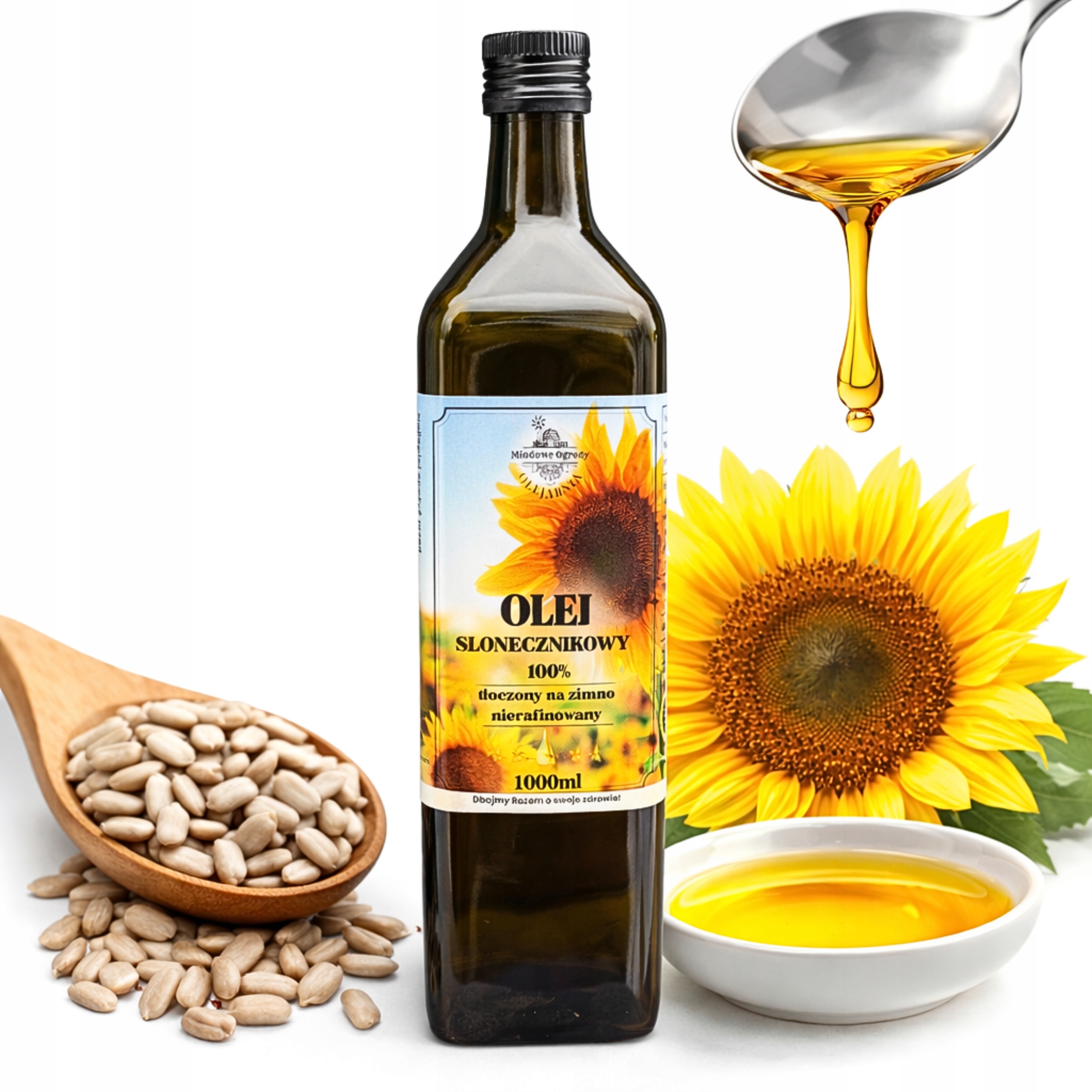 OLEJ SŁONECZNIKOWY TŁOCZONY NA ZIMNO • 1000ml • MIODOWE OGRODY