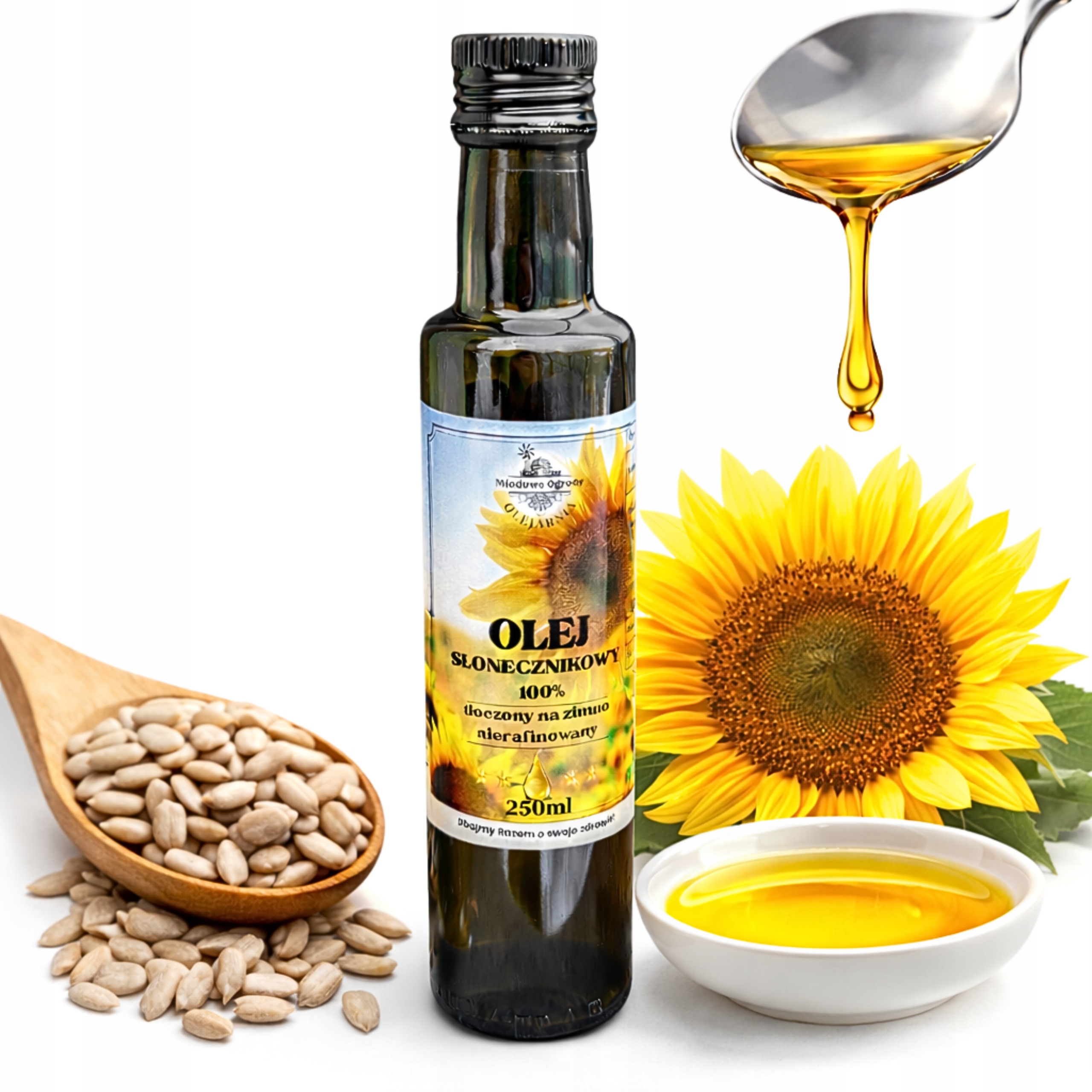 OLEJ SŁONECZNIKOWY TŁOCZONY NA ZIMNO • 250ml • MIODOWE OGRODY