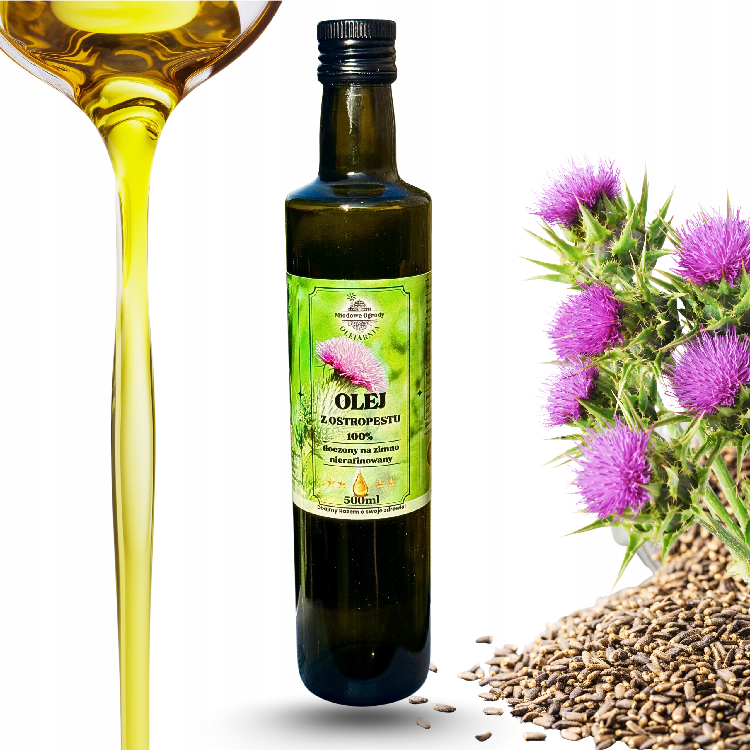 ✅ Olej tłoczony z ostropestu plamistego pochodzącego z polskich upraw.